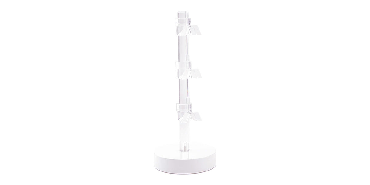 3 Pieces Frame Display. Matte white lacquer wood base with acrylic frame holder. Dimensions: 9 x 3.5 in / 22 x 9 cm Weight: 5.61 oz / 159 g