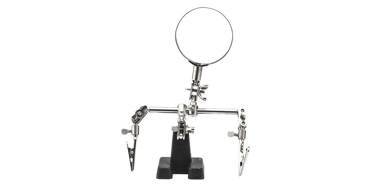 Helping hand with magnifier and two alligator clips.